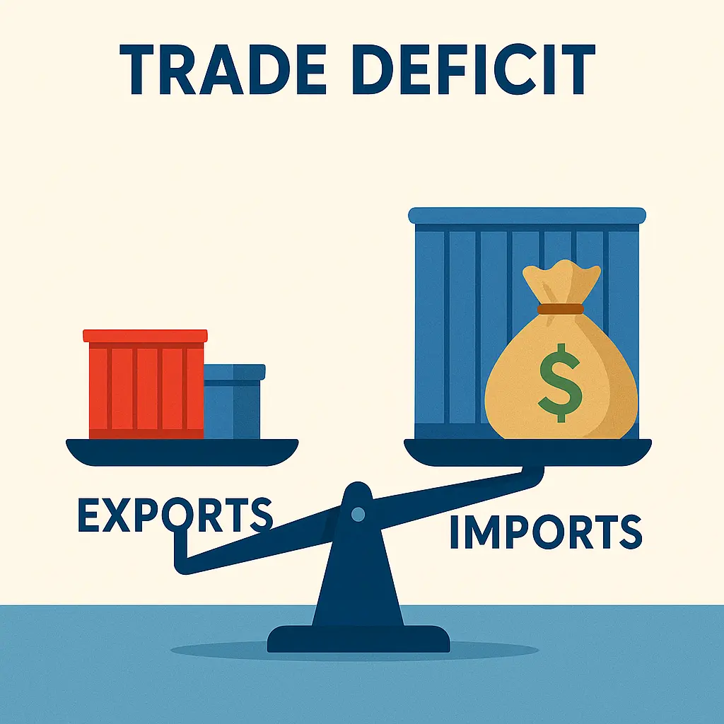 A trade deficit arises when imports are greater than exports. Put simply, the country buys more from others than it sells. Many ask what is a trade deficit because it is often linked with economic challenges. For instance, the United States has run a trade deficit for decades due to high consumer demand and dependence on imports such as oil and electronics.